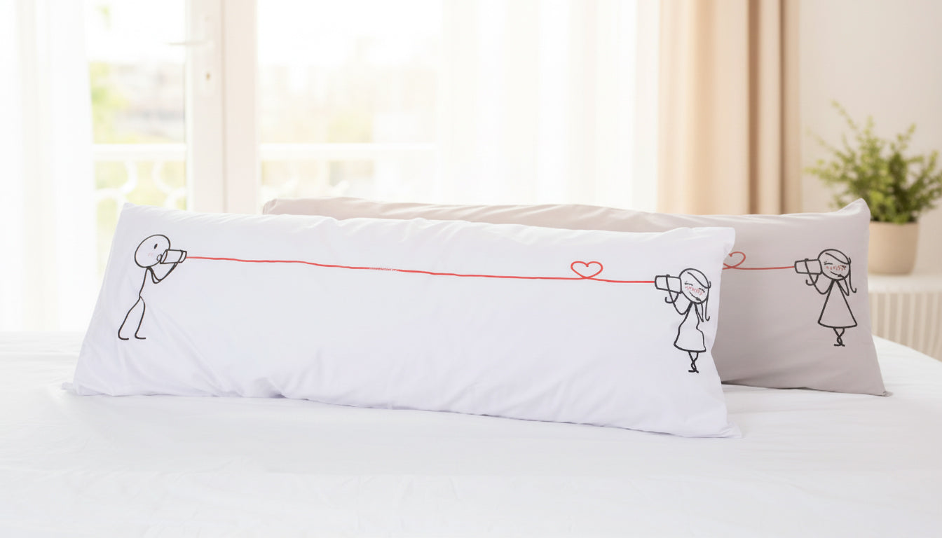 ![Human Touch Long Pillow for Bed Featuring Love-Themed Bedroom Decor with Cute Illustrations]()