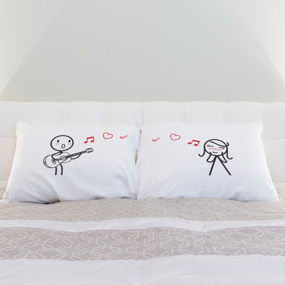 Product: A pair of pillowcases with a connected design printed on the front, packed nicely in a paper gift box. They do not include pillows.