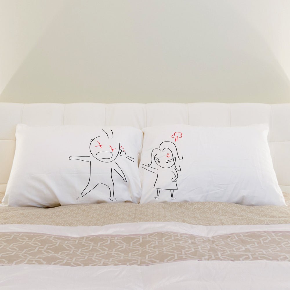 ปลอกหมอนคอตตอนเบลนด์เนื้อนุ่ม สกรีนลายเป็นเลิฟสตอรี่มุ๊งมิ๊งที่เรื่องราวต่อเนื่องกันบนปลอกหมอน 2 ใบ บรรจุในกล่องสุดน่ารักพร้อมบริการห่อของขวัญฟรี